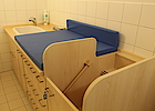 Die Schlafräume in der Familiengruppe sowie in der Krippengruppe, die sich separat vom Gruppenraum getrennt befinden, werden gerne von den U3-Kindern zum Schlafen, Entspannen und Ausruhen nach eigenem Bedürfnis genutzt.